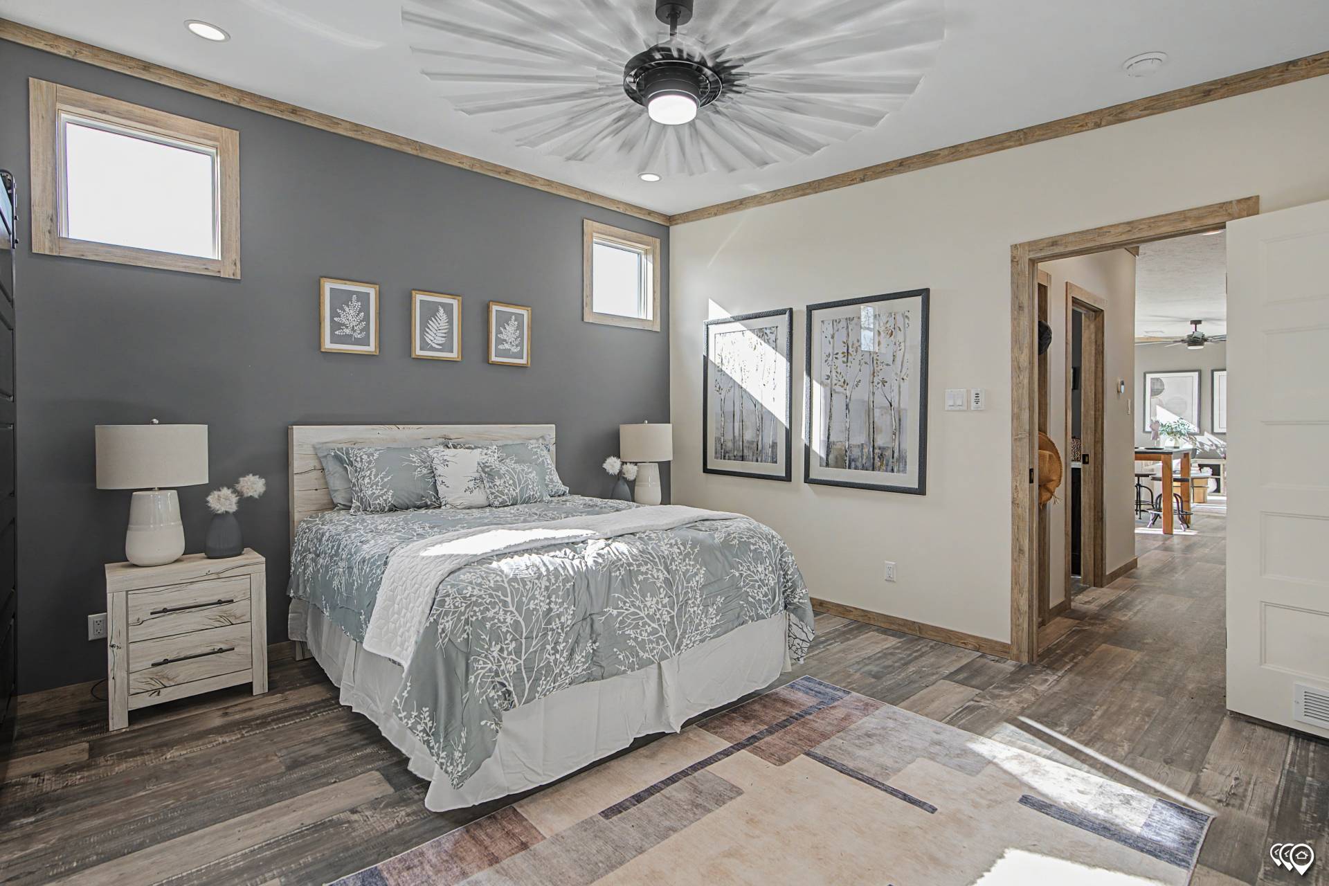The private master suite offers a quiet escape with its own dedicated bathroom and closet, while a second bedroom and full bath give guests or family members their own comfortable space. A functional utility room keeps daily living organized and out of the way.
