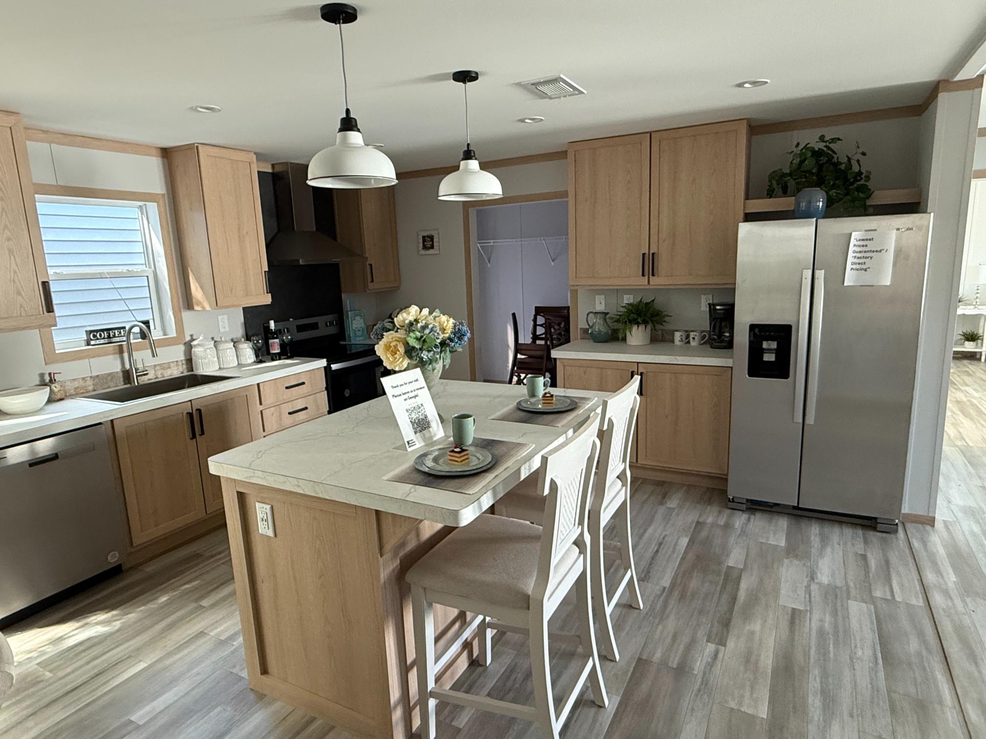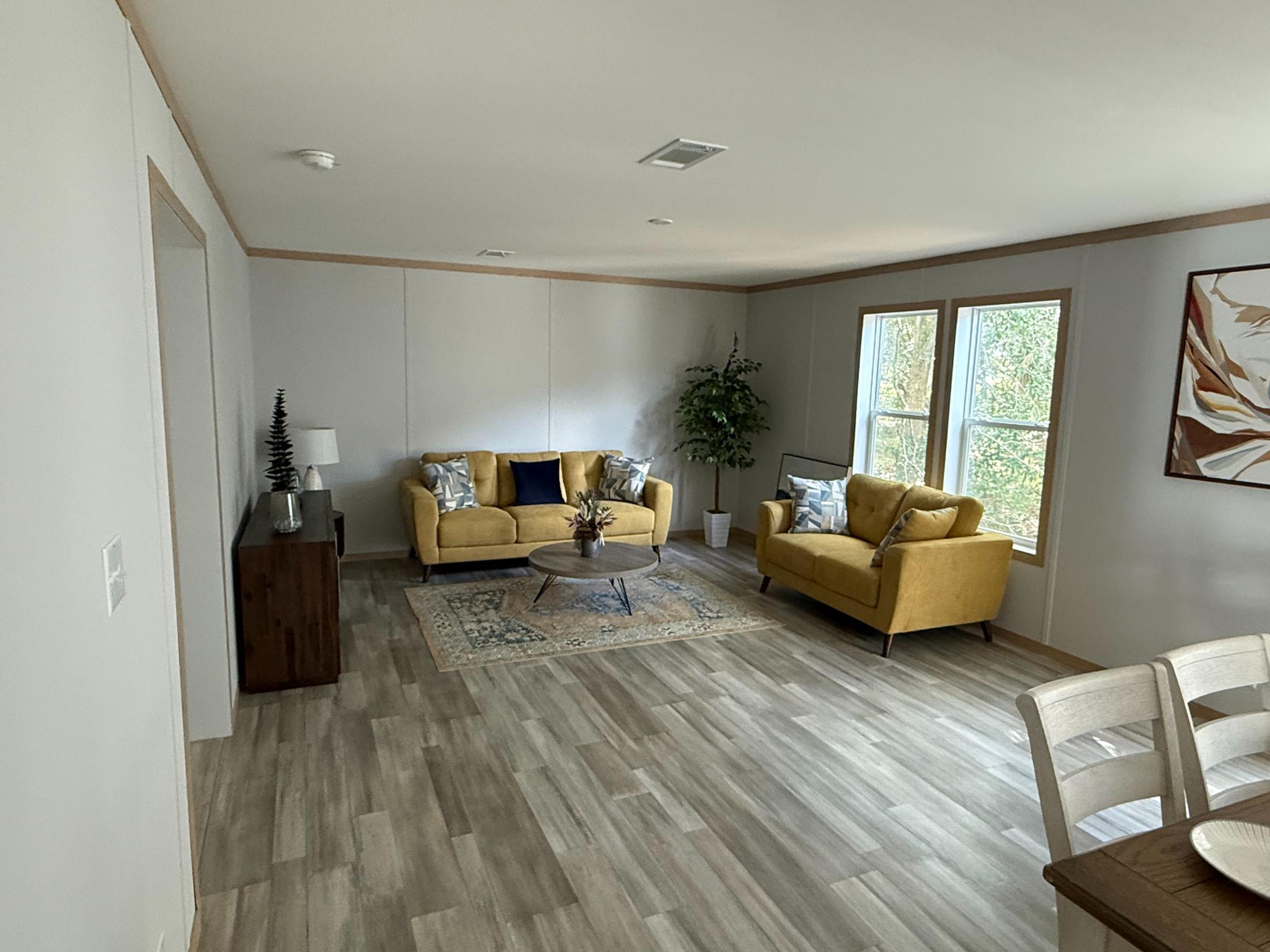 Exterior Specs: Wind Zone II Construction / 6” Centerline Walls with CFC Centerline Seal / 2" x 8" Floor Joists 24” on Center / 2" x 6" Exterior Walls 24” Center / 3/4" Tongue & Groove OSB Floors - Nailed / ThermoPly Structural Sheathing Wrap / Ring Shank Nailed Roof Decking / 25-Yr. Algae Resistant Shingles–Nailed / Weatherwatch Waterproof Leak Barrier at Eaves & Valleys / Cobra Ridge Venting System / 8’ Flat Ceiling Throughout / Energy Star Certified w/ R-38 Roof; R-13 Wall; R-22 Floor / Insulation Included as Special Promotion / Sealed Air Distribution System & Return Air / Mighty Man Door & Window Construction / Vinyl Lap Siding – Double 4 Profile – Nailed w/White Corners / Vinyl Door & Window Trim – Street Side Only / Low E, Insulated Glass Vinyl Windows / 36” Fiberglas Inswing Front Door w/ 6-Lite Window & Black Lever Handle / Deadbolt Lock / Outswing Cottage Rear Door w/ Black Lever Handle / Pex Water Lines System / Shut Off Valves Sinks & Toilets / Recessed Dormer Over Front Door w/ Vertical Vinyl Accent - Doublewides only